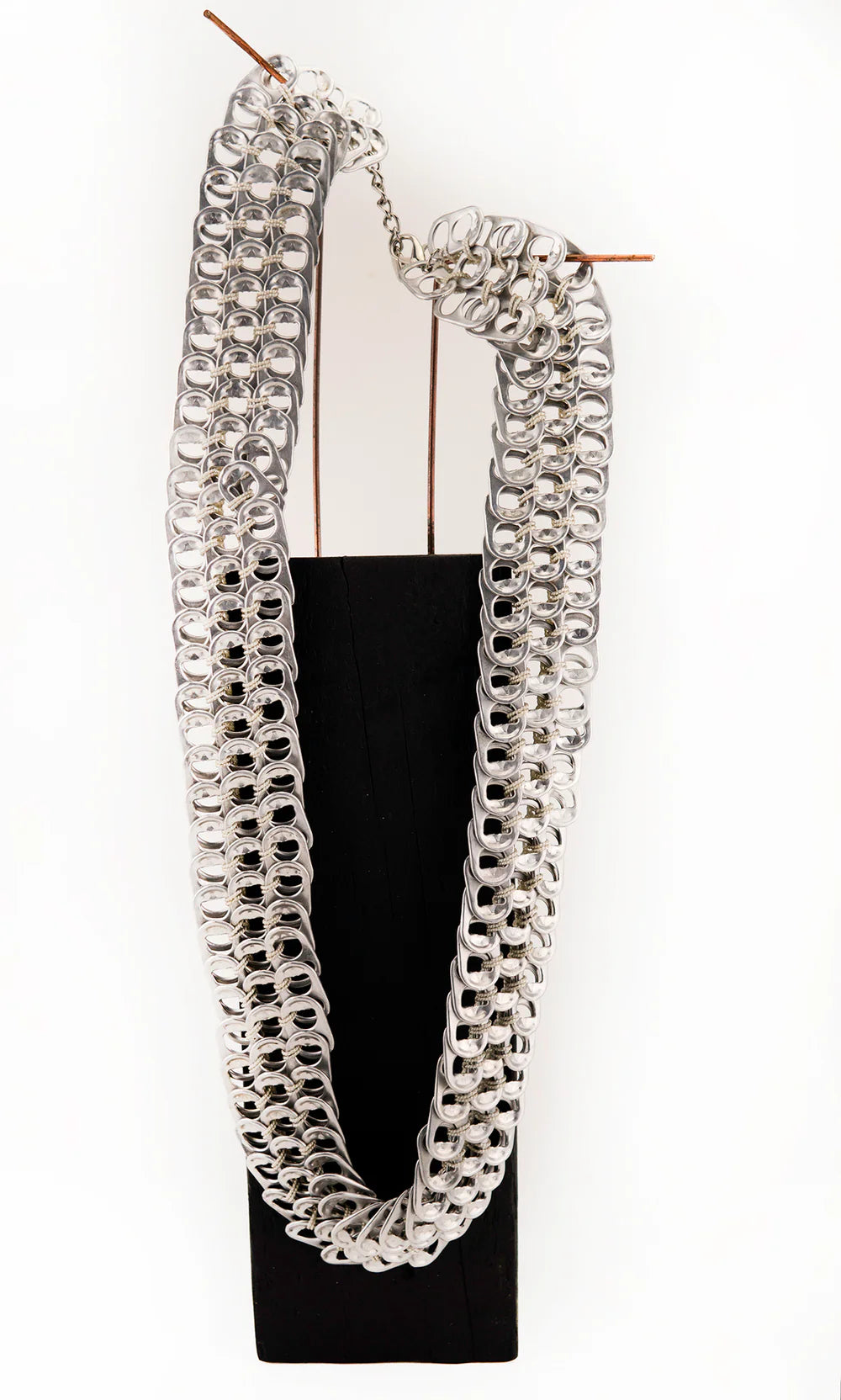 • Materials: Recycled aluminum pull tabs (510 pull tabs per necklace)