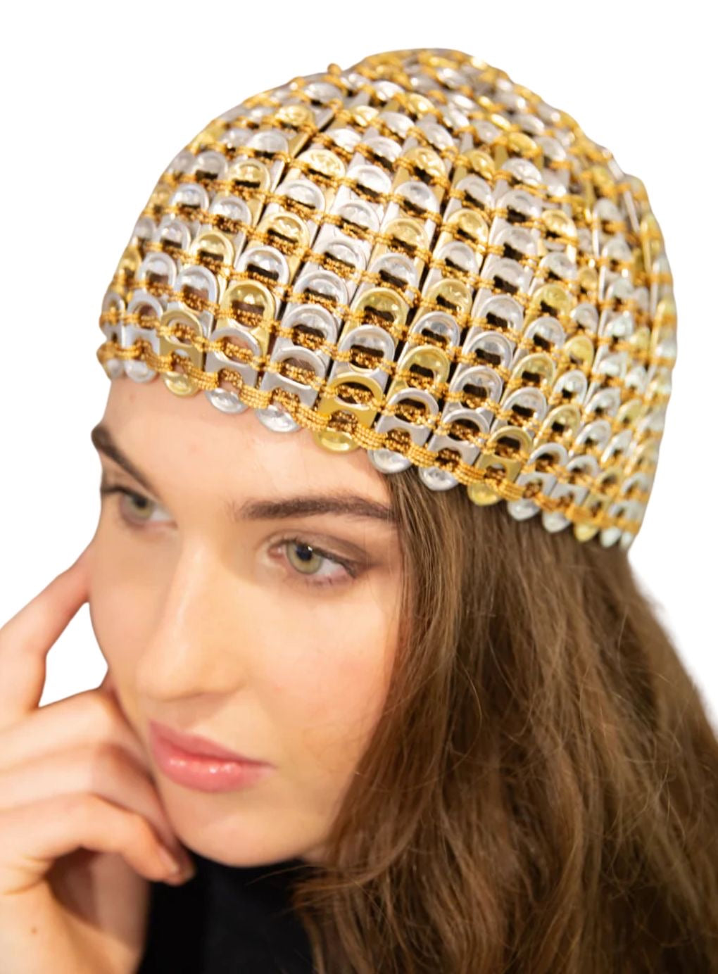- Sustainably Made: Designed using 450 recycled aluminum pull tabs, this beanie not only reduces waste but also transforms it into a fashion statement.