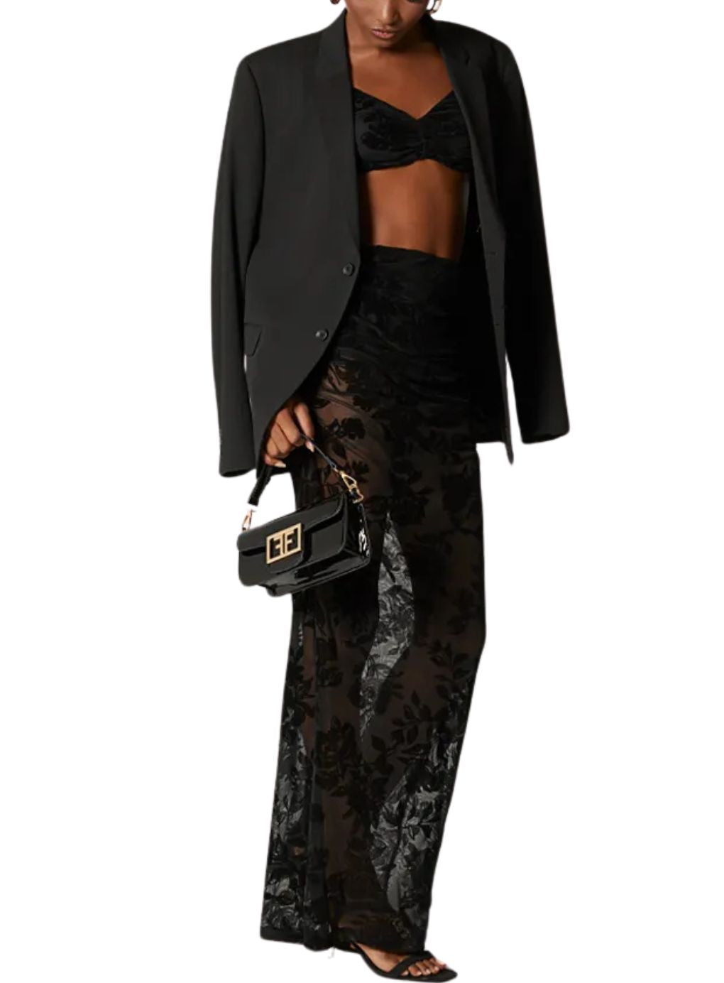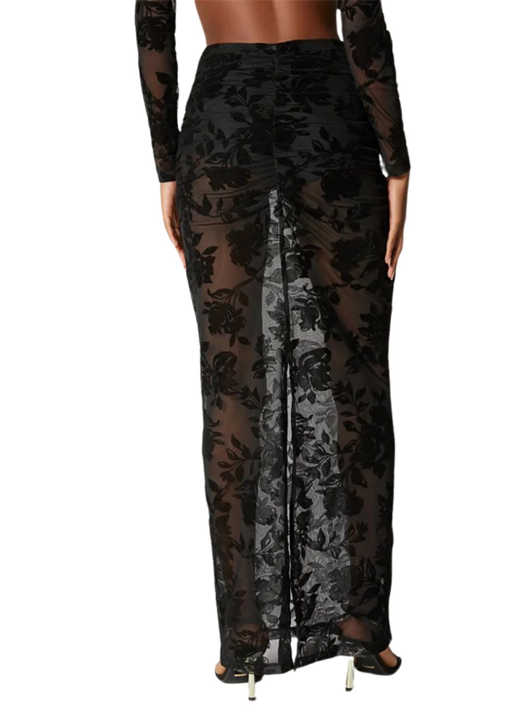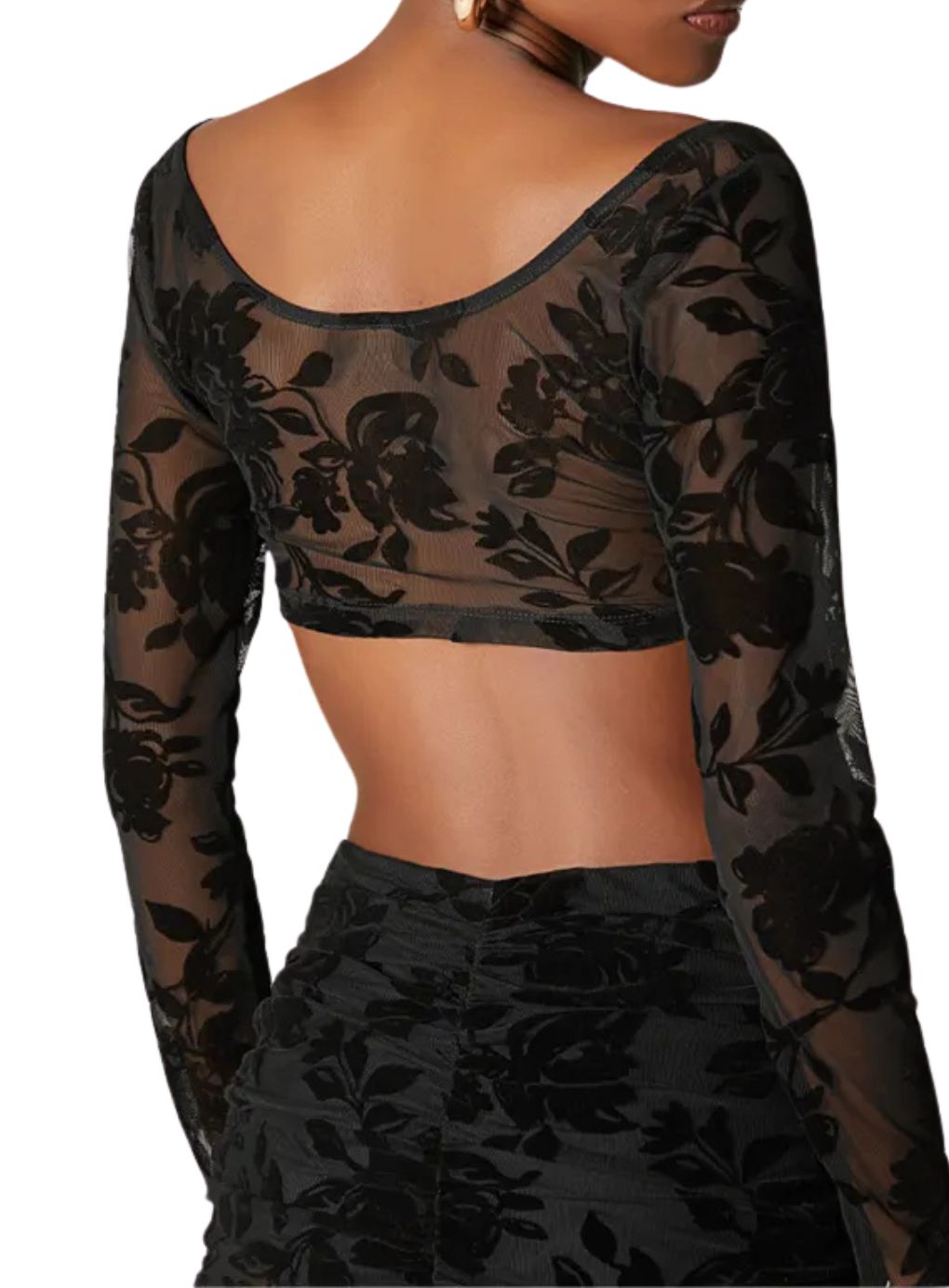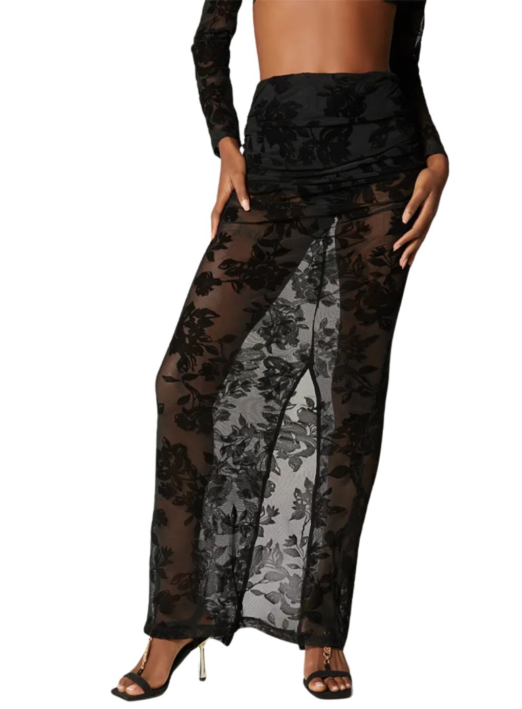 Elevate your allure with the Roses Lace Set, a statement of refined sensuality and timeless elegance. This exquisite ensemble features a sculpted crop top, meticulously crafted from premium stretch lace with intricate rose motifs and an open back that whispers sophistication. The coordinating long skirt, sheer yet tastefully lined with built-in shorts, flows gracefully to create a silhouette that is both ethereal and empowering.