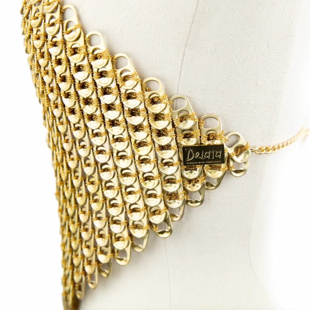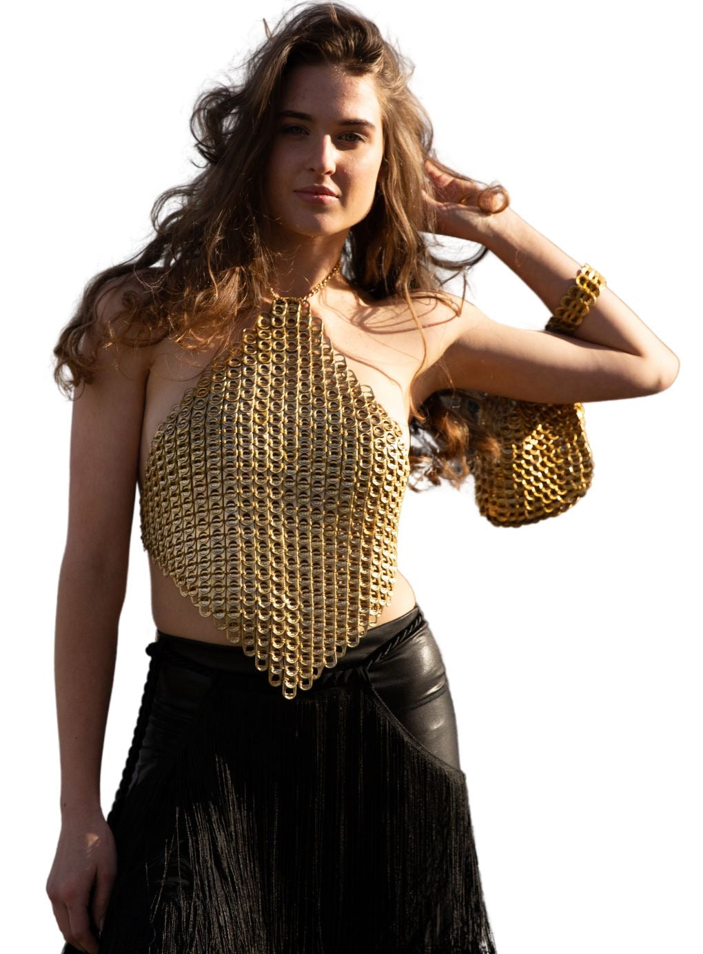 The crop is consciously created from collected pull tabs which have been cleaned and crochet together by hand.