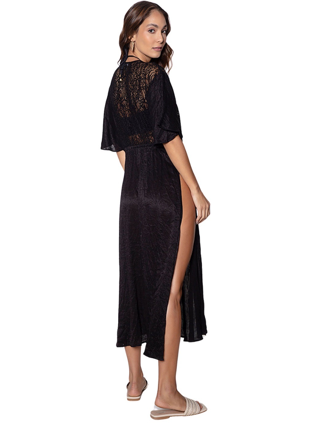 Let the world marvel as you walk by in this flowy masterpiece Lace Luxe Kimono. Crafted from soft, airy fabric, this kimono adds graceful movement to any outfit. It dries quickly and weighs next to nothing, making it a must-have for travel.