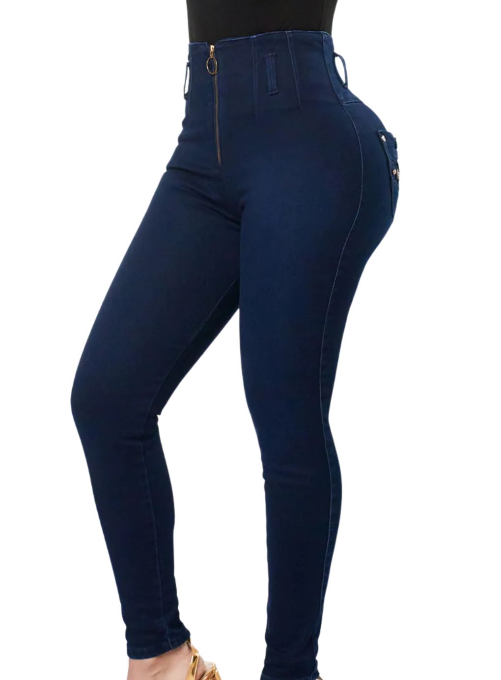 Refined, flattering, and designed to stand out—these high-waisted jeans sculpt the silhouette with a clean, elegant design and a polished finish. The front is minimal, free from pockets, for a sleek and streamlined look that enhances your shape.