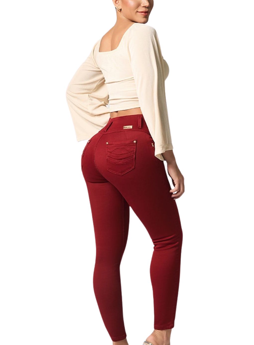 Turn heads with our Wine Sculpt High-Waist Push Up Jeans, specially designed to enhance your curves and highlight your natural shape. These deep burgundy jeans offer a flattering, body-contouring fit thanks to their high-rise waist and expertly tailored Colombian design.